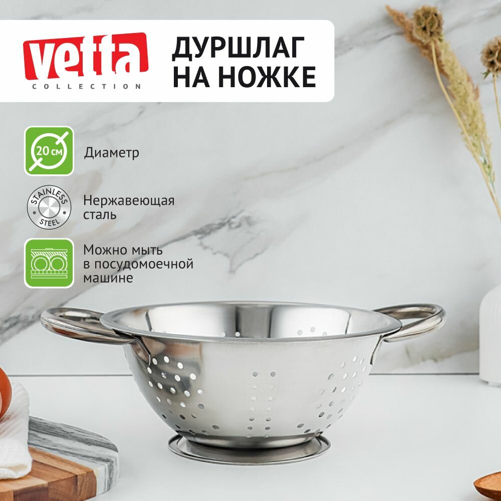 Дуршлаг на ножке VETTA Классика, диаметр 20 см, нержавеющая сталь информация: