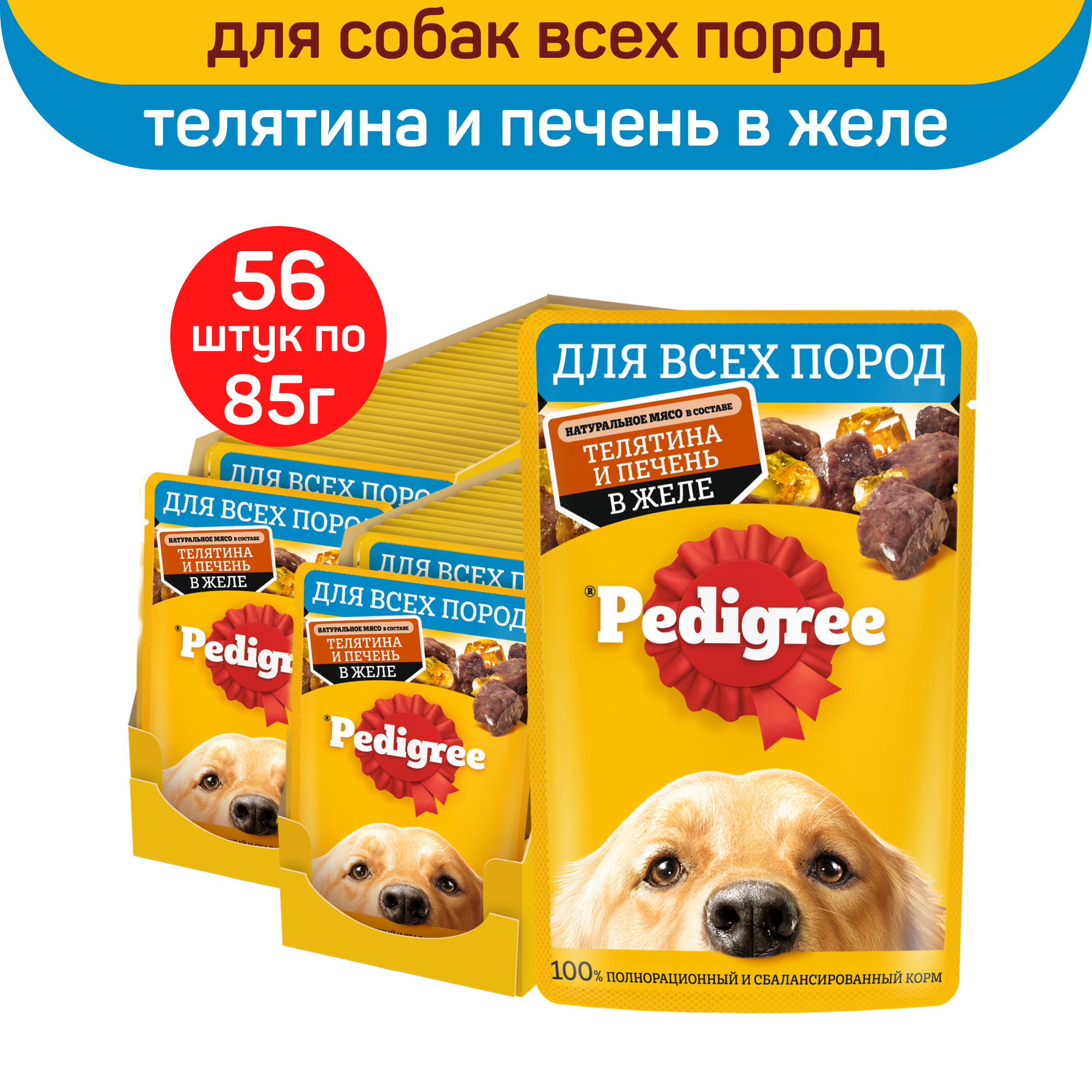 Влажный корм PEDIGREE для взрослых собак всех пород, с телятиной и печенью в желе, 56 шт по 85 г информация: