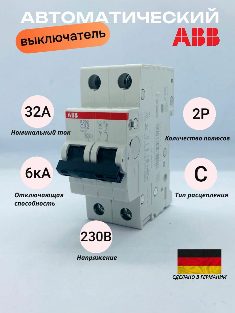 Модульный автомат ABB S202 2п C 32А 6кА информация: