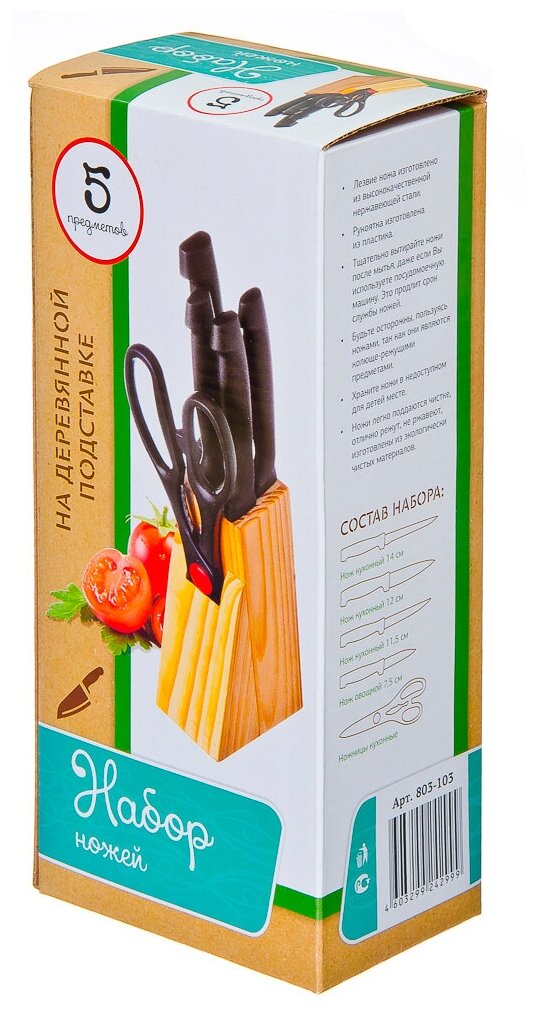 VETTA 803-103, Набор ножей в деревянной подставке ( 4 ножа, ножницы)