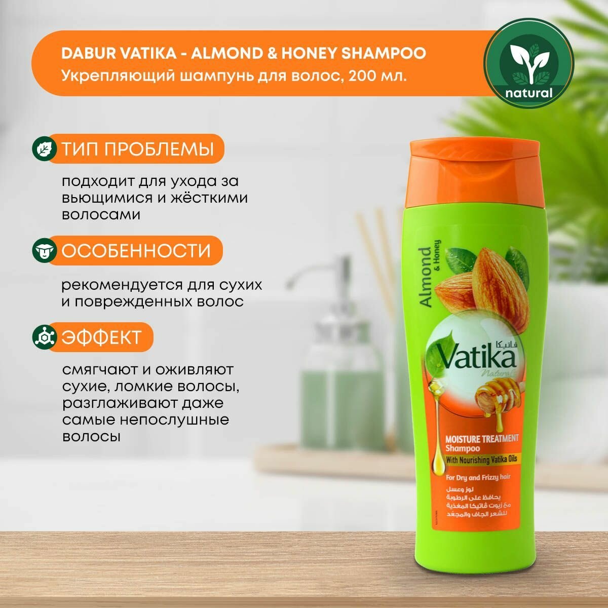 Шампунь Увлажняющий Vatika Dabur с медом и миндалем 200 мл 397 ₽
