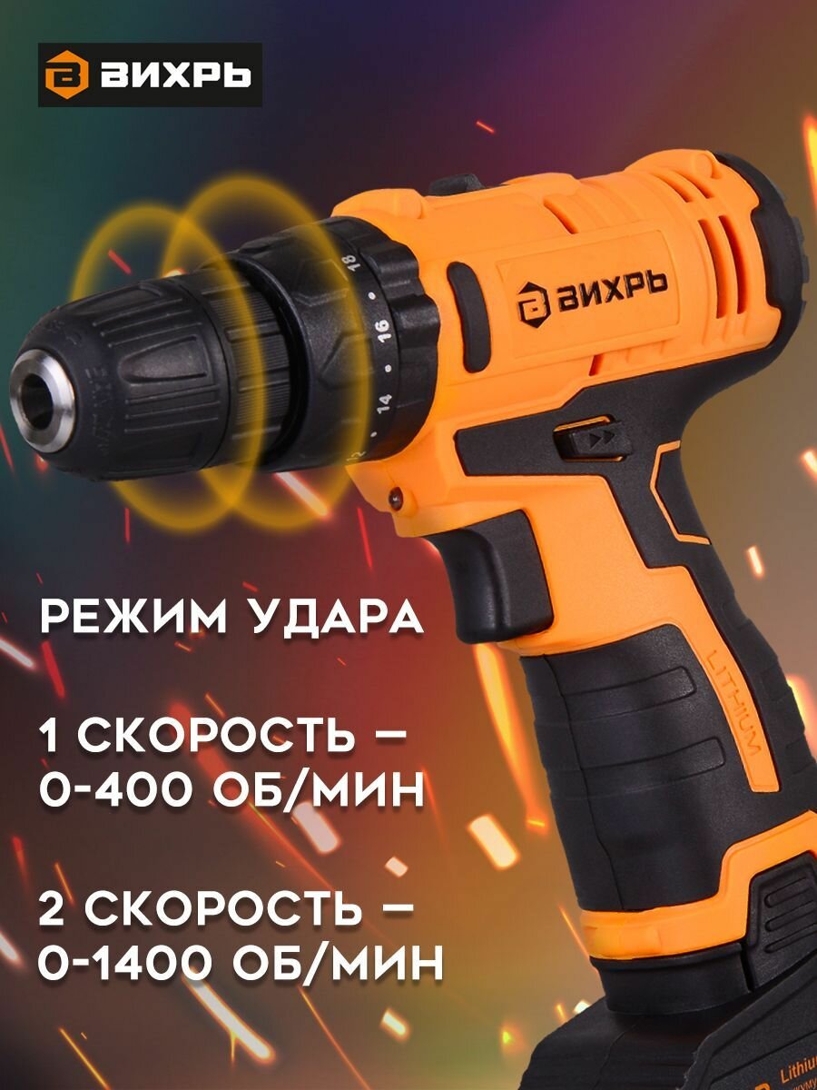 Дрель-шуруповерт Вихрь ДА-24лЛ-2кУ оранжевый 72/14/19