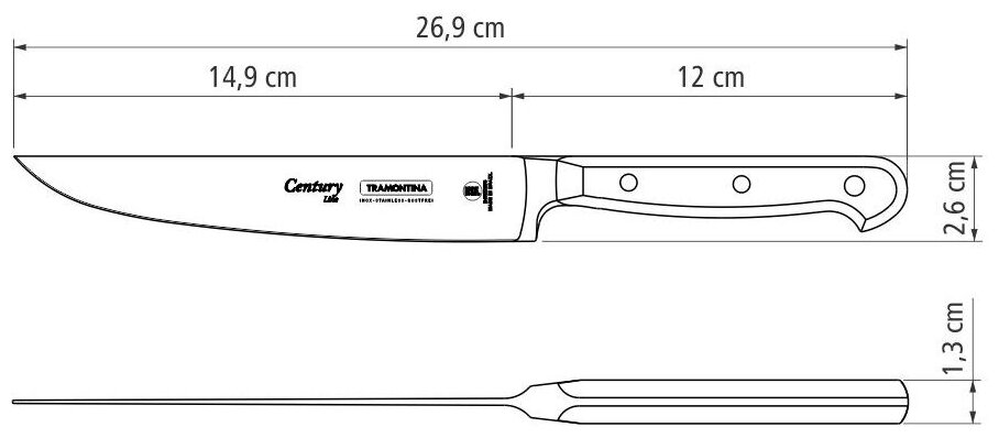 Нож кухонный универсальный 15 см кованый Tramontina Century, черная ручка из поликарбоната, 24007/006 информация: