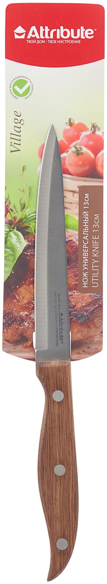 Нож универсальный ATTRIBUTE "VILLAGE" 13см, нержавеющая сталь/дерево информация: