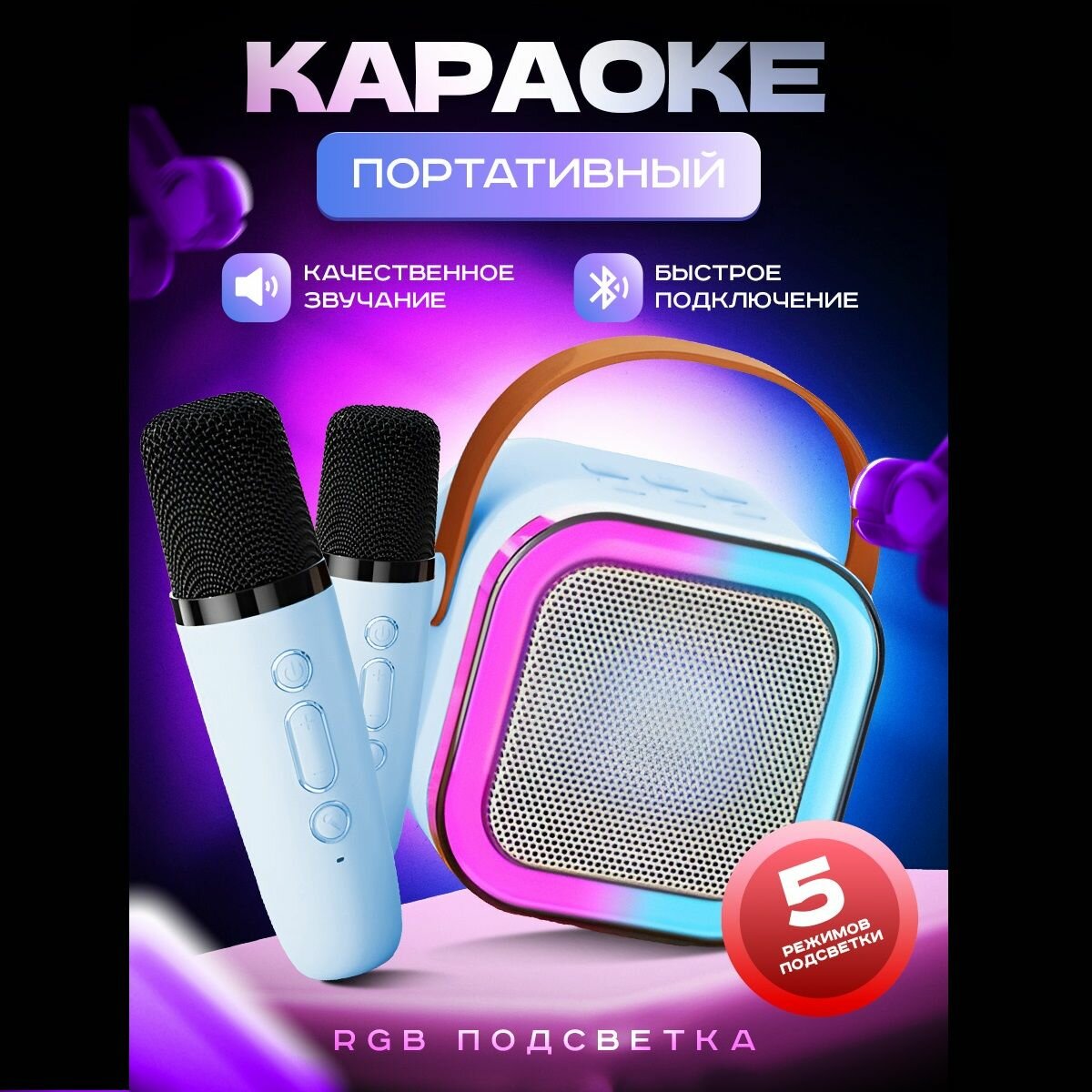 Отзывы на Микрофон караоке с портативными колонками Блютуз (Bluetooth), переносная /сабвуфером, микрофон для вокала детский