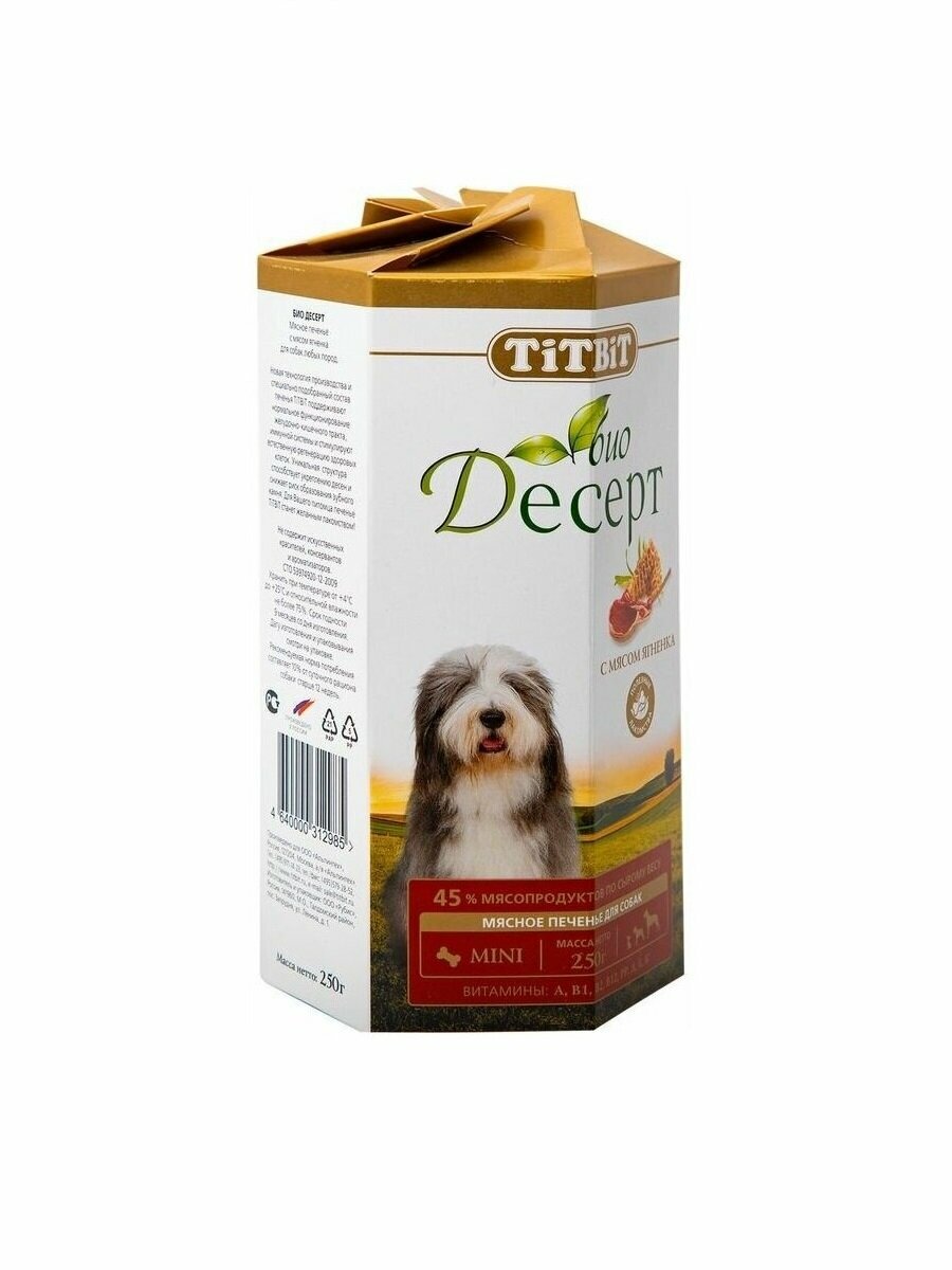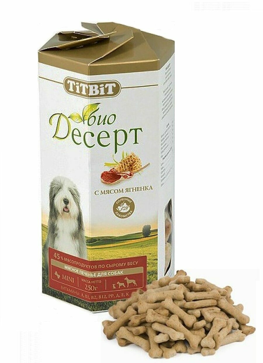 10 цен на TIT BIT Био-десерт печенье с мясом ягненка мини д/собак 250г