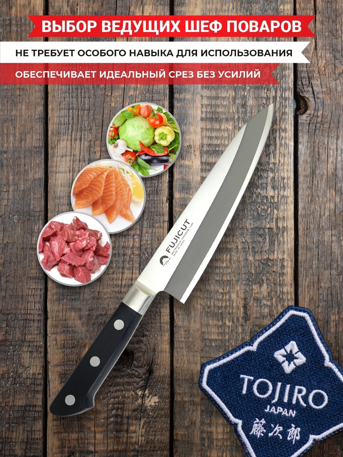 Отзывы на Нож Кухонный Поварской шеф Tojiro (FC-1662), для рыбы и мяса, курицы и овощей длина лезвия 18,0 см с больстером.