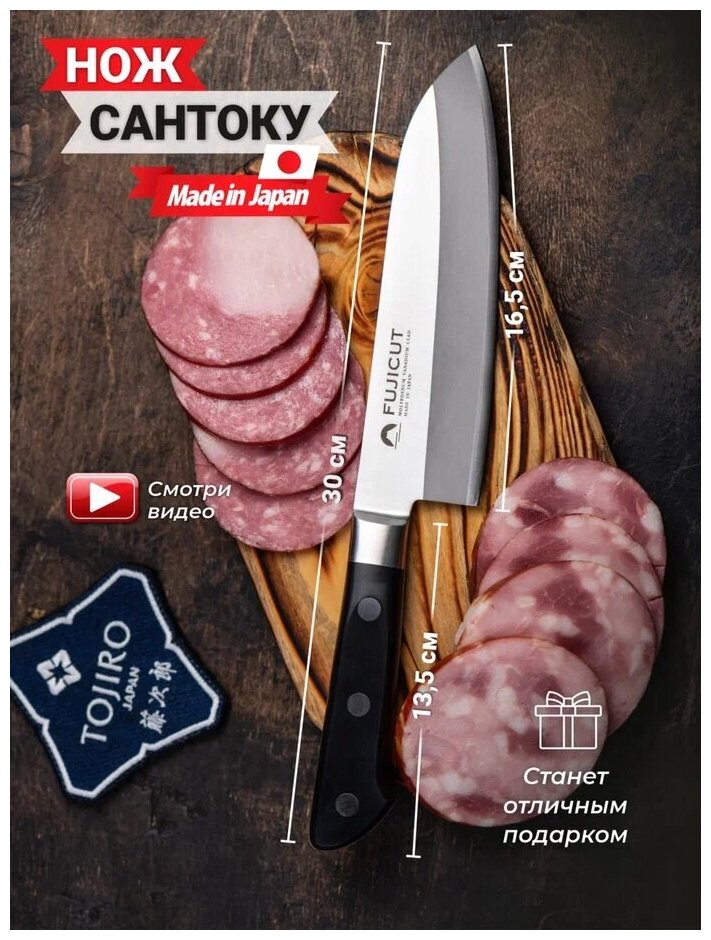 10 цен на Кухонный Нож Сантоку поварской для мяса Tojiro (FC-1661), длина лезвия 16,5 см, Япония