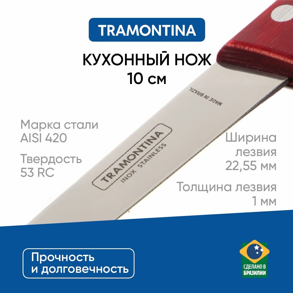 Нож кухонный 10 см Tramontina Polywood, деревянная ручка, 21127/074 информация: