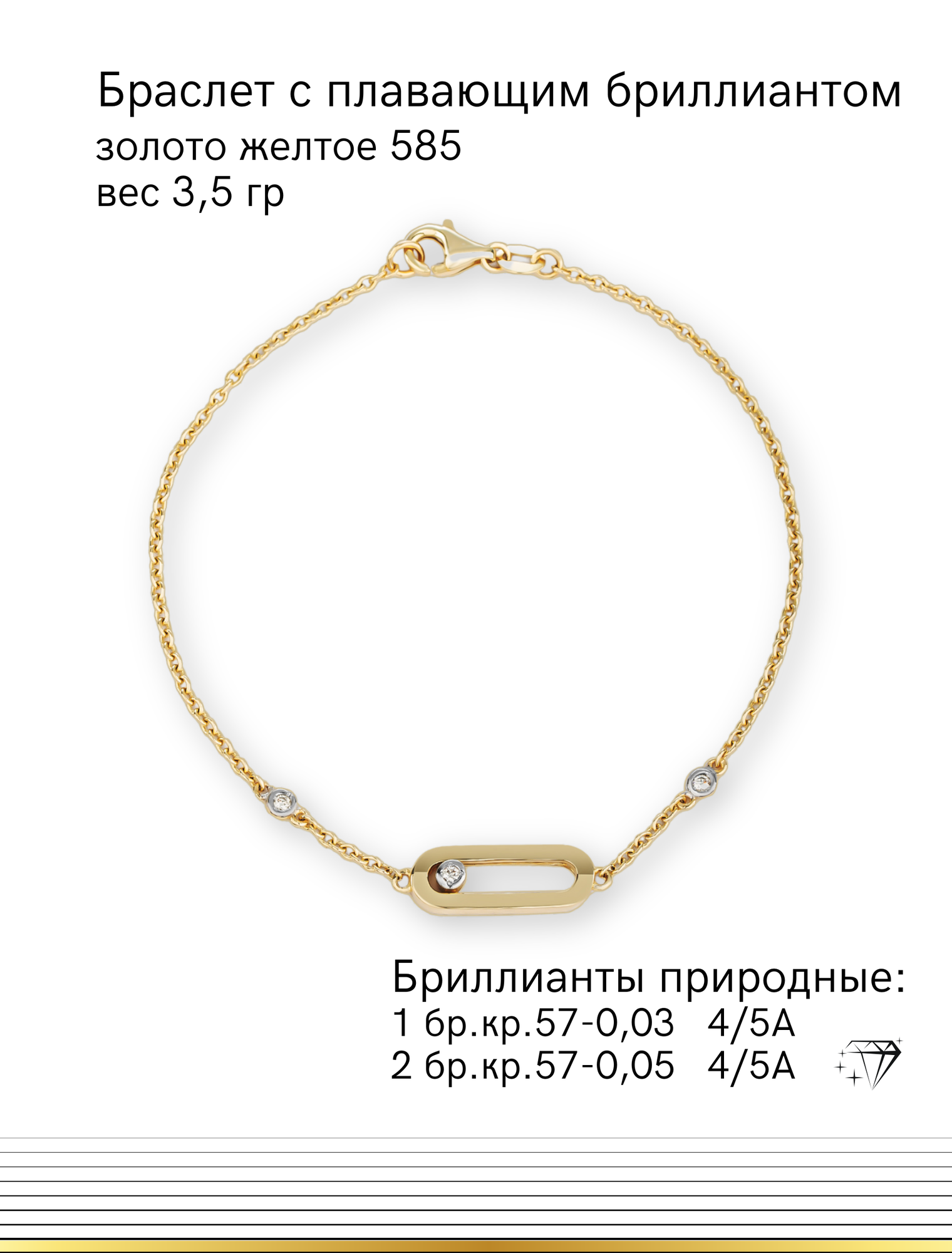 10 цен на золотой браслет 585 пробы с плавающим бриллиантом