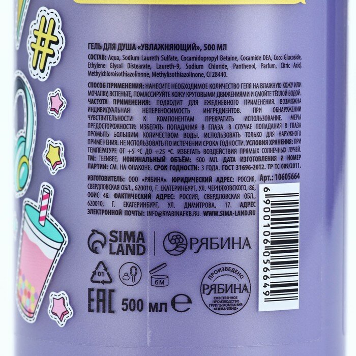 10 цен на TeenBee Гель для душа женский, 500 мл, аромат черники, TeenBee