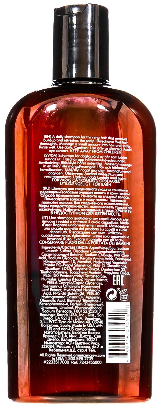 American Crew Шампунь укрепляющий для тонких волос, Fortifying Shampoo, 450 мл. информация: