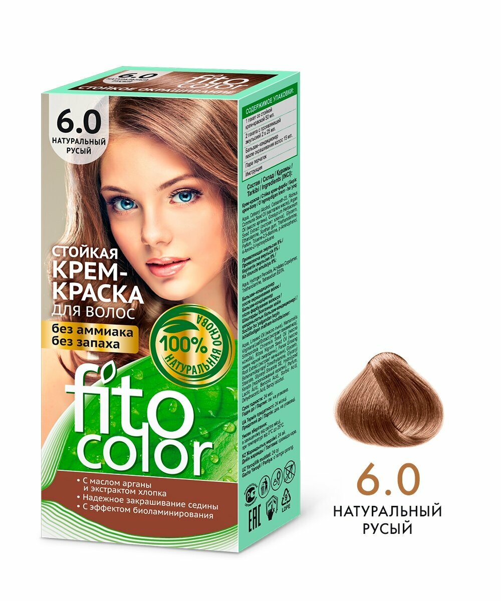 Стойкая крем-краска для волос без аммиака FitoColor Fito косметик, 6.0 Натуральный русый, 115 мл (в наборе 3 шт) информация:
