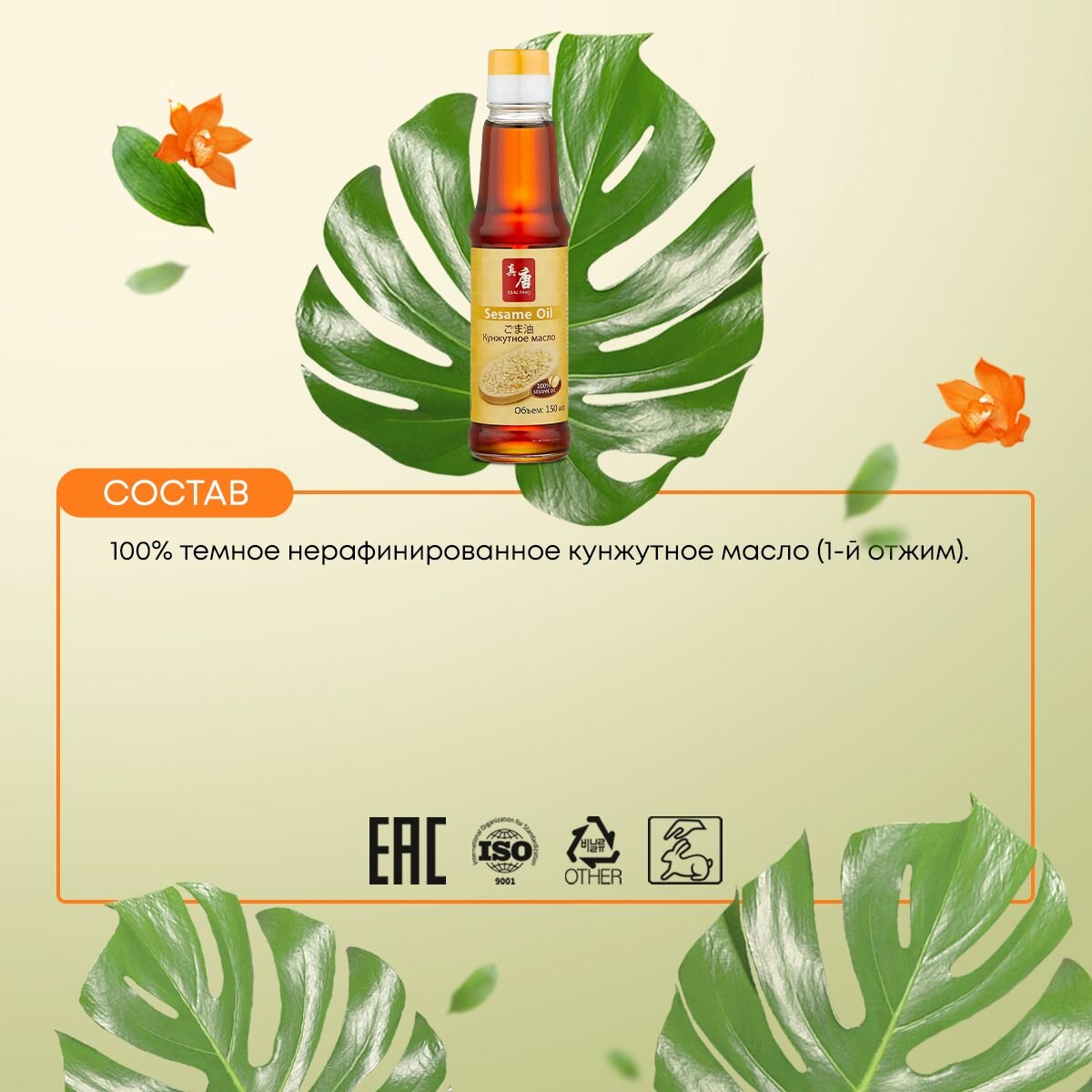Кунжутное масло для еды нерафинированное, горячий отжим REAL TANG, 150 мл информация:
