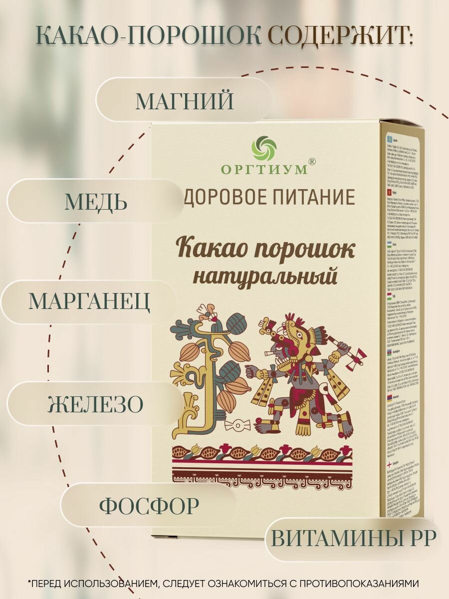 Какао порошок натуральный Оргтиум 200 гр информация: