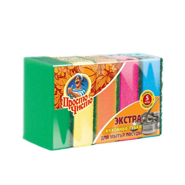 Губки для мытья посуды просто чисто Экстра поролоновые 5шт,