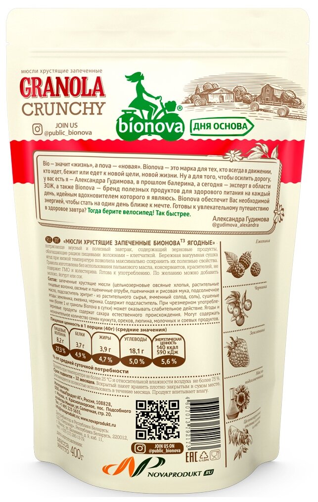 Мюсли - кранч Bionova, ягодные, 400 г информация: