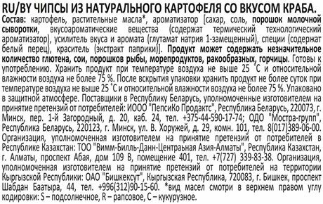 Чипсы картофельные LAY'S со вкусом краба, 95г