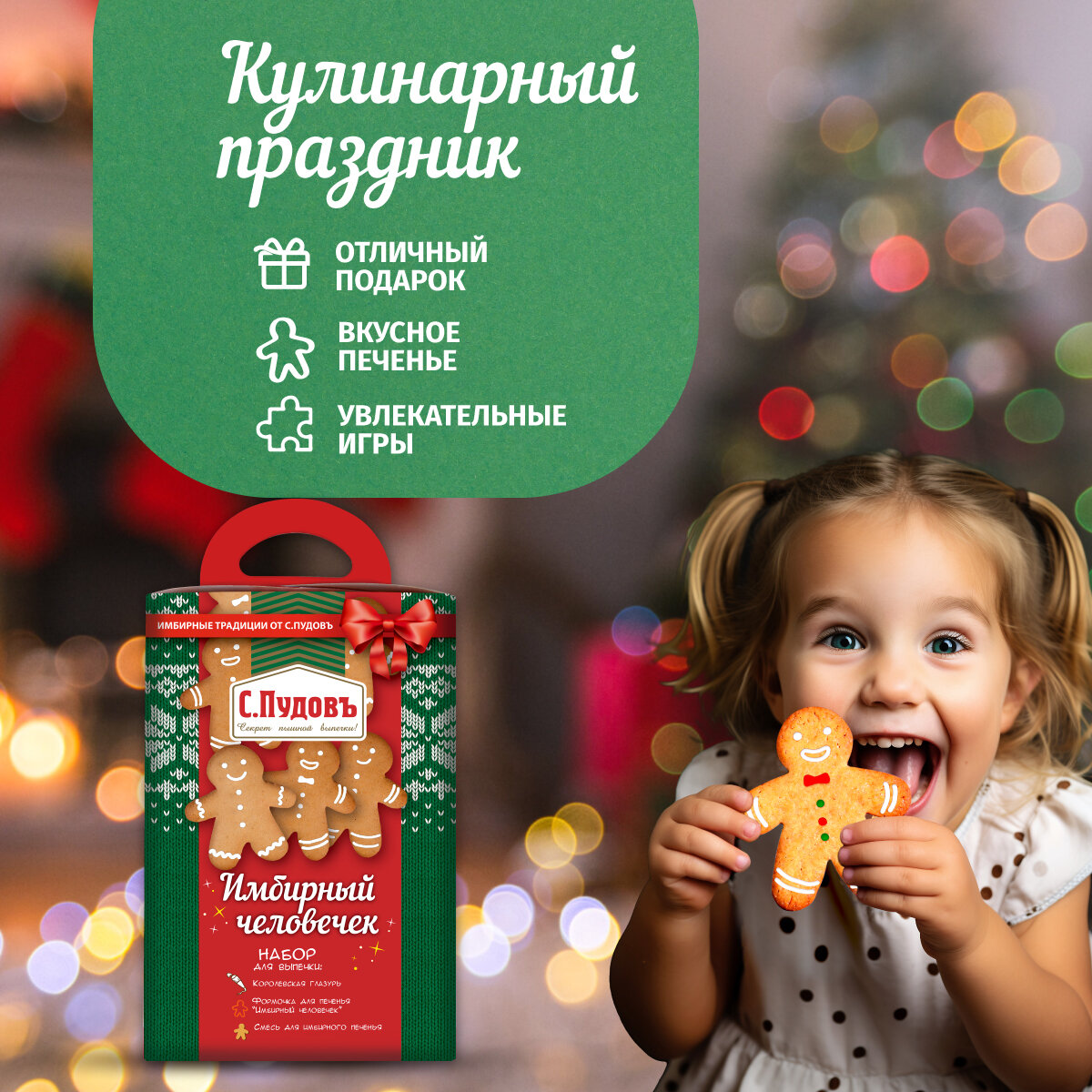 Отзывы на Новогодний подарочный набор для выпечки печенья "Имбирный человечек", сладкий подарок для детей ( мучная смесь для выпечки, глазурь, формочка), С.Пудовъ