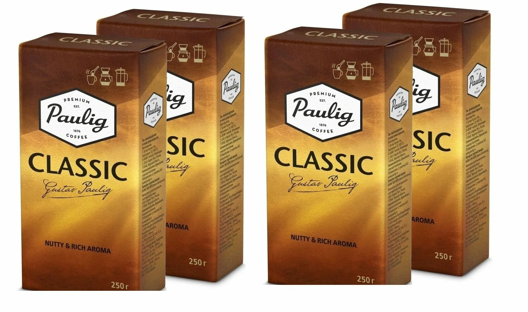 Кофе молотый Paulig Classic 250 г., в вакуумной упаковке, набор из 4 шт информация: