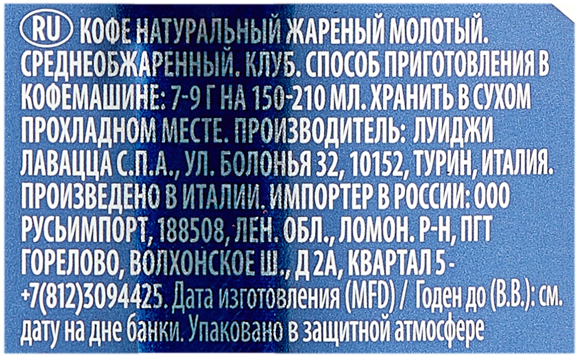 Кофе молотый Lavazza Club железная банка 250 грамм 2 штуки информация: