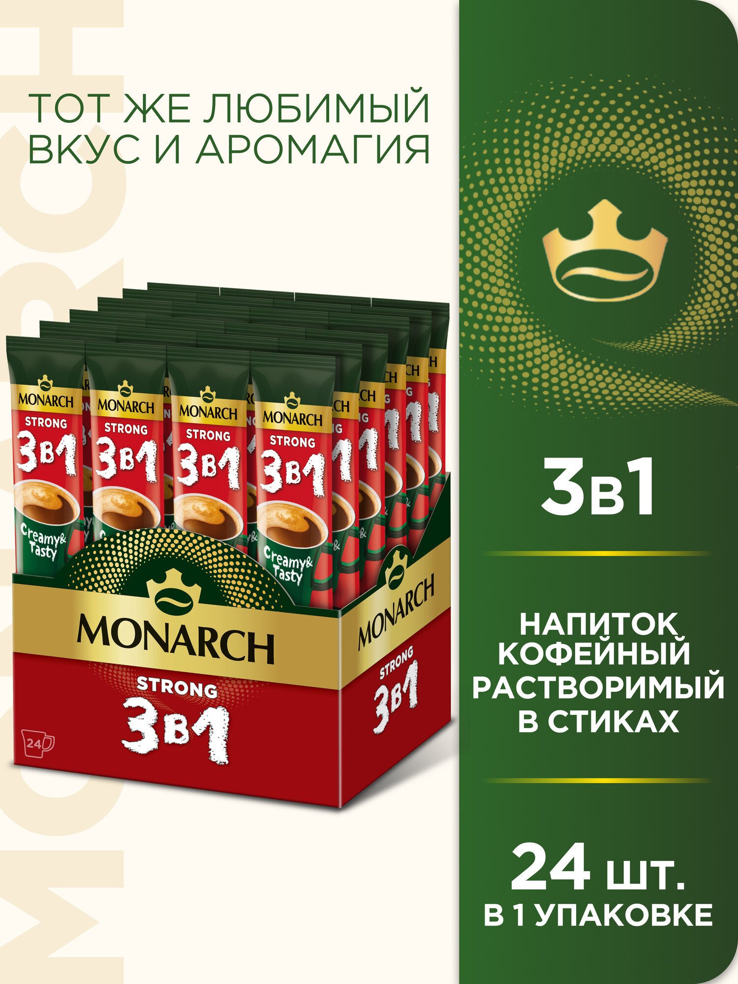 Напиток кофейный растворимый 3 в 1 Monarch Strong, 24 шт по 13 г информация: