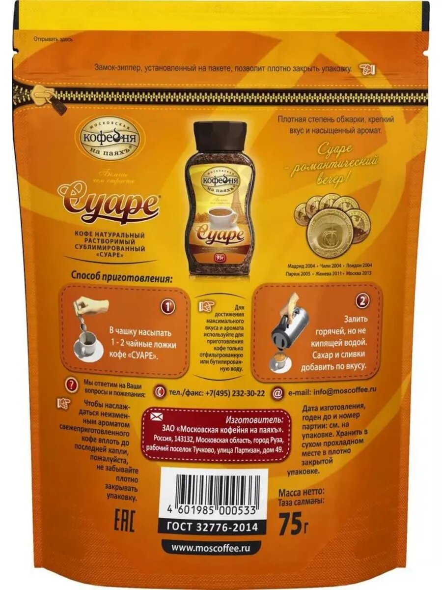 Московская кофейня на паяхъ Суаре кофе рaстворимый, пакет 75 г