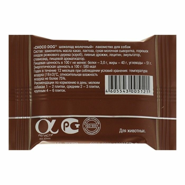 CHOCO DOG Шоколад д/собак молочный 15гр