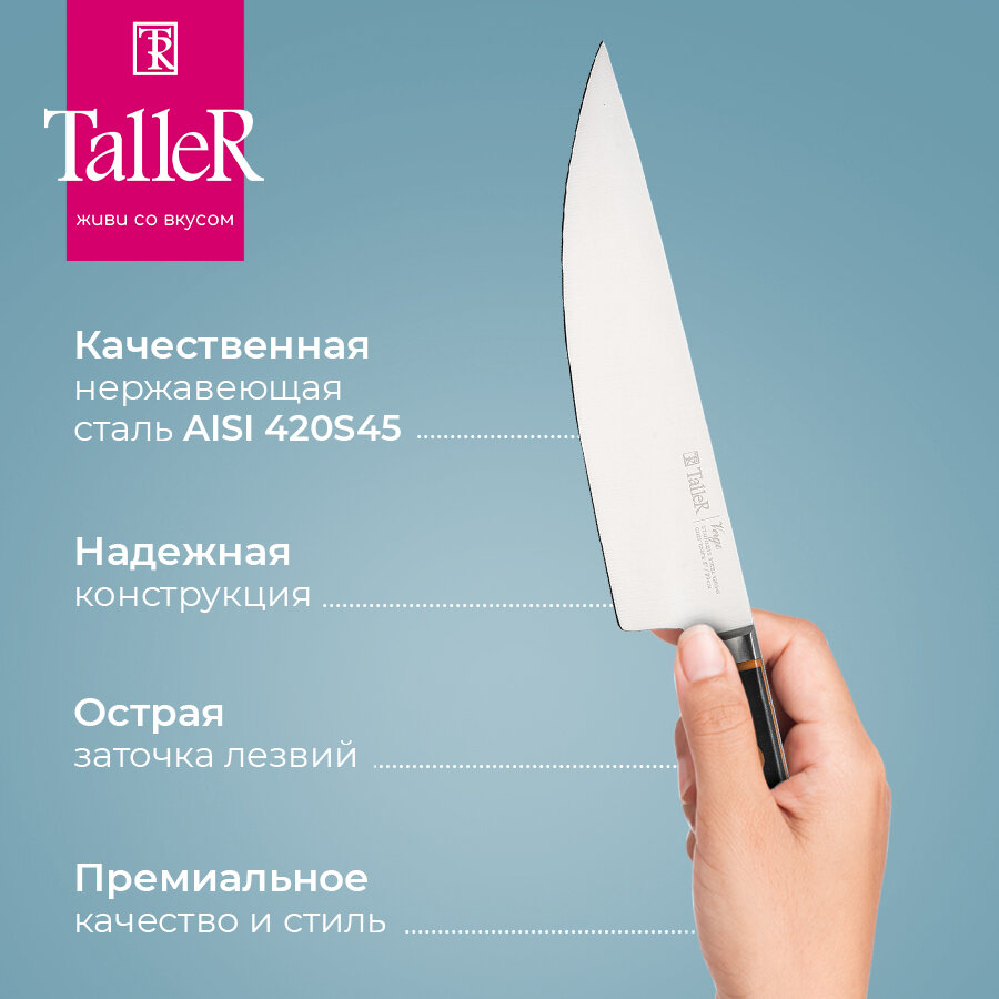 Нож кухонный поварской TalleR TR-22065 Ведж, лезвие 20 см, нержавеющая сталь информация: