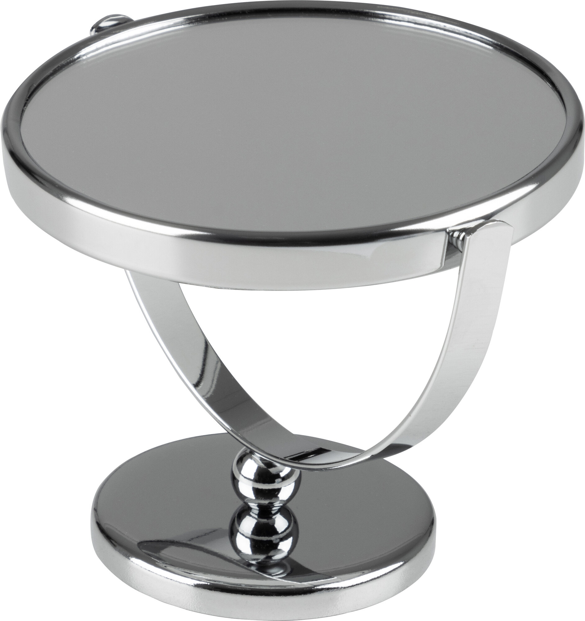 Зеркало косметическое M-3135, двухстороннее на ножке (диам.12.5см, хром. металл, стекло)