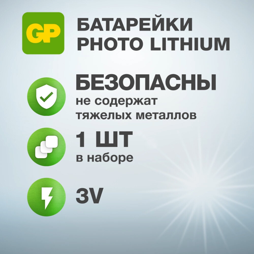 Батарейка литиевая цилиндрическая GP CR2E-2CR1, 3 В, 1 шт информация:
