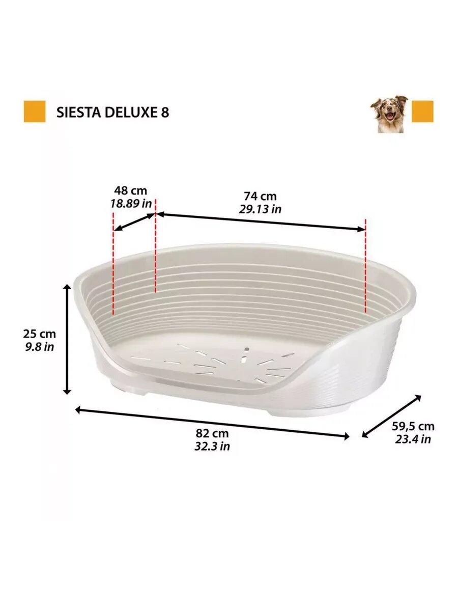 Лежак пластиковый для собак FERPLAST SIESTA DELUXE 8, 82 х 59,5 х 25 см (белый)