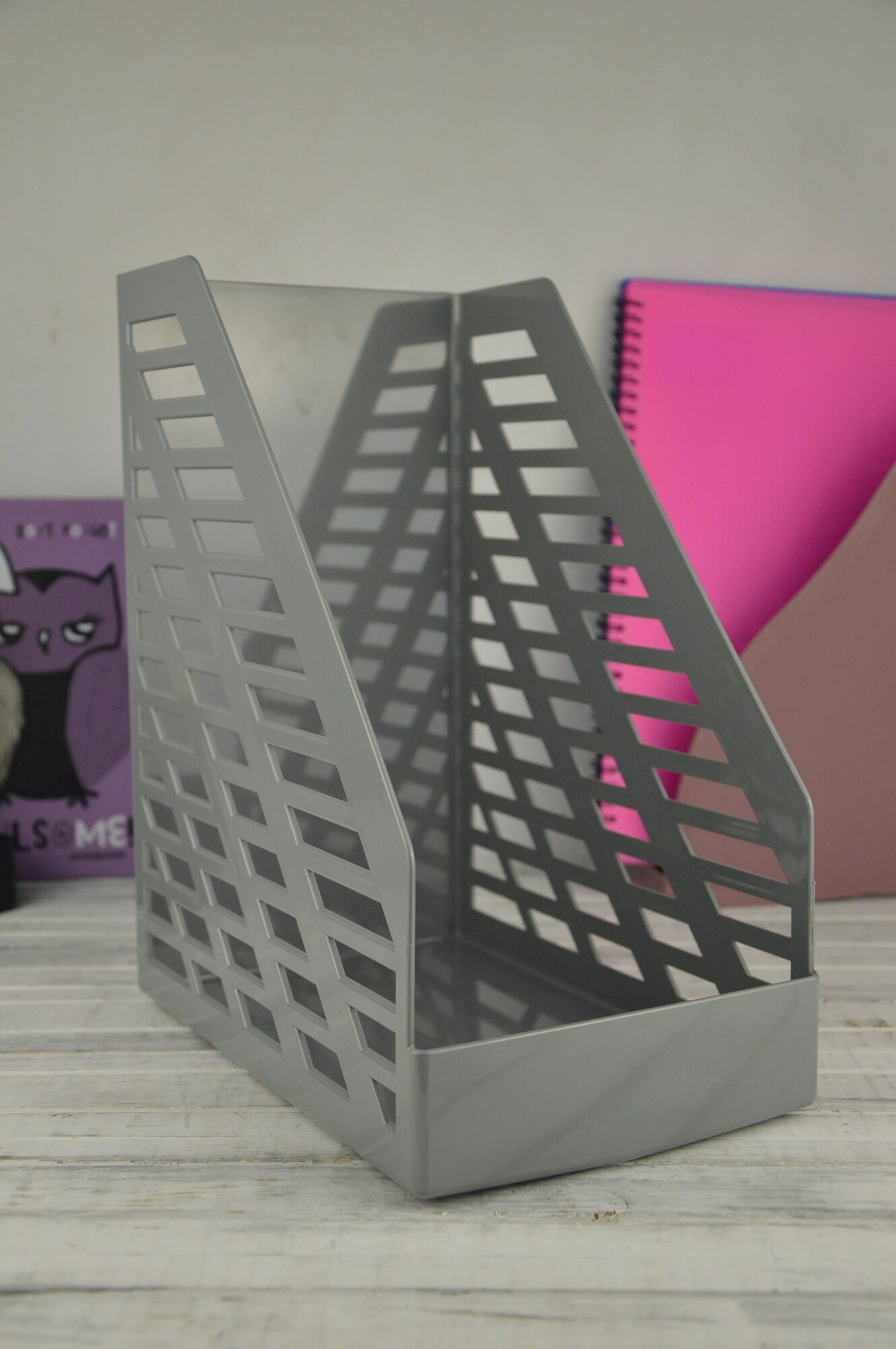 Лоток для бумаг вертикальный XXL, ширина 16 см, прочный, серый