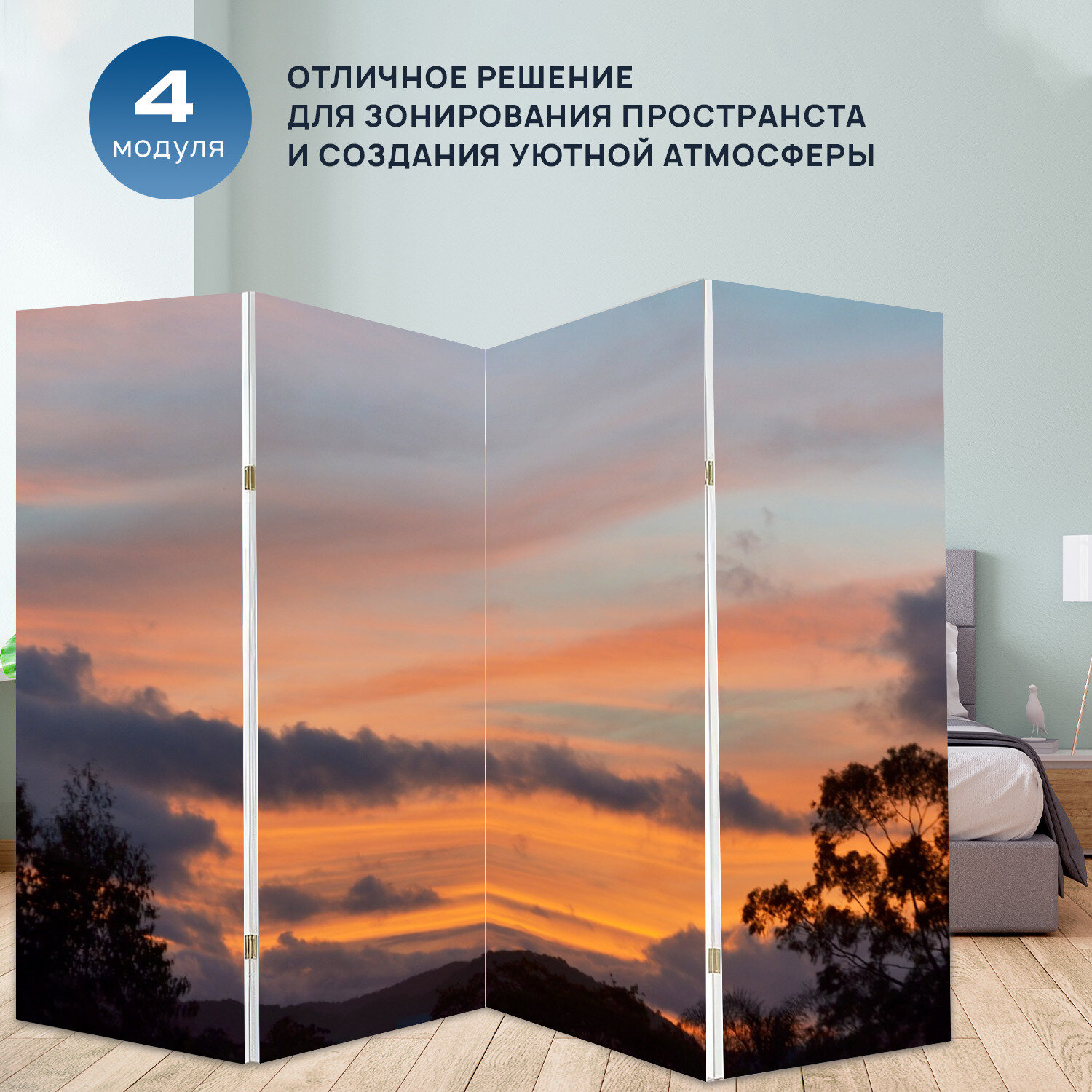Отзывы на Ширма "Небо, золотой час, оранжевый градиент" раскладная перегородка для зонирования с принтом на холсте