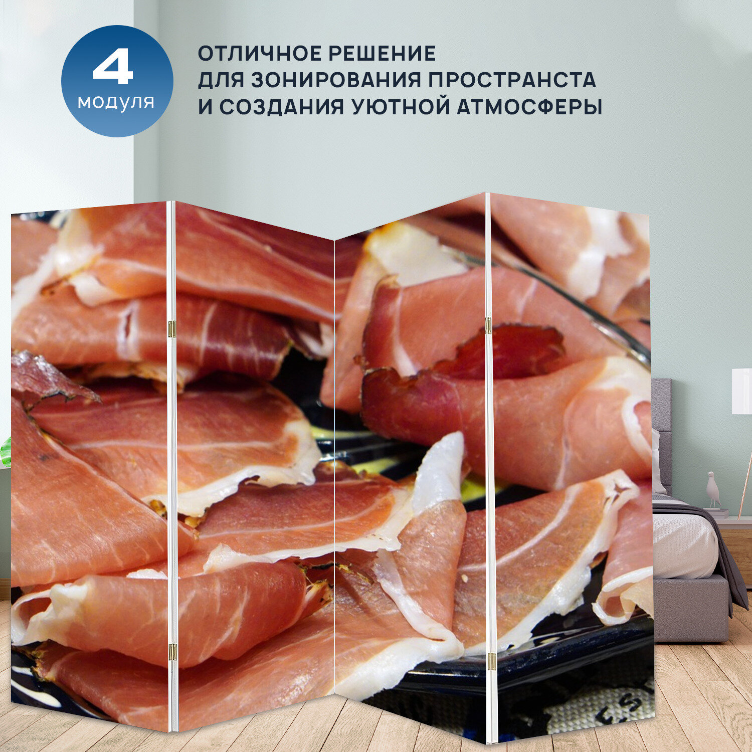 Ширма "Ветчина, мясо, еда" раскладная перегородка для зонирования с принтом на холсте информация: