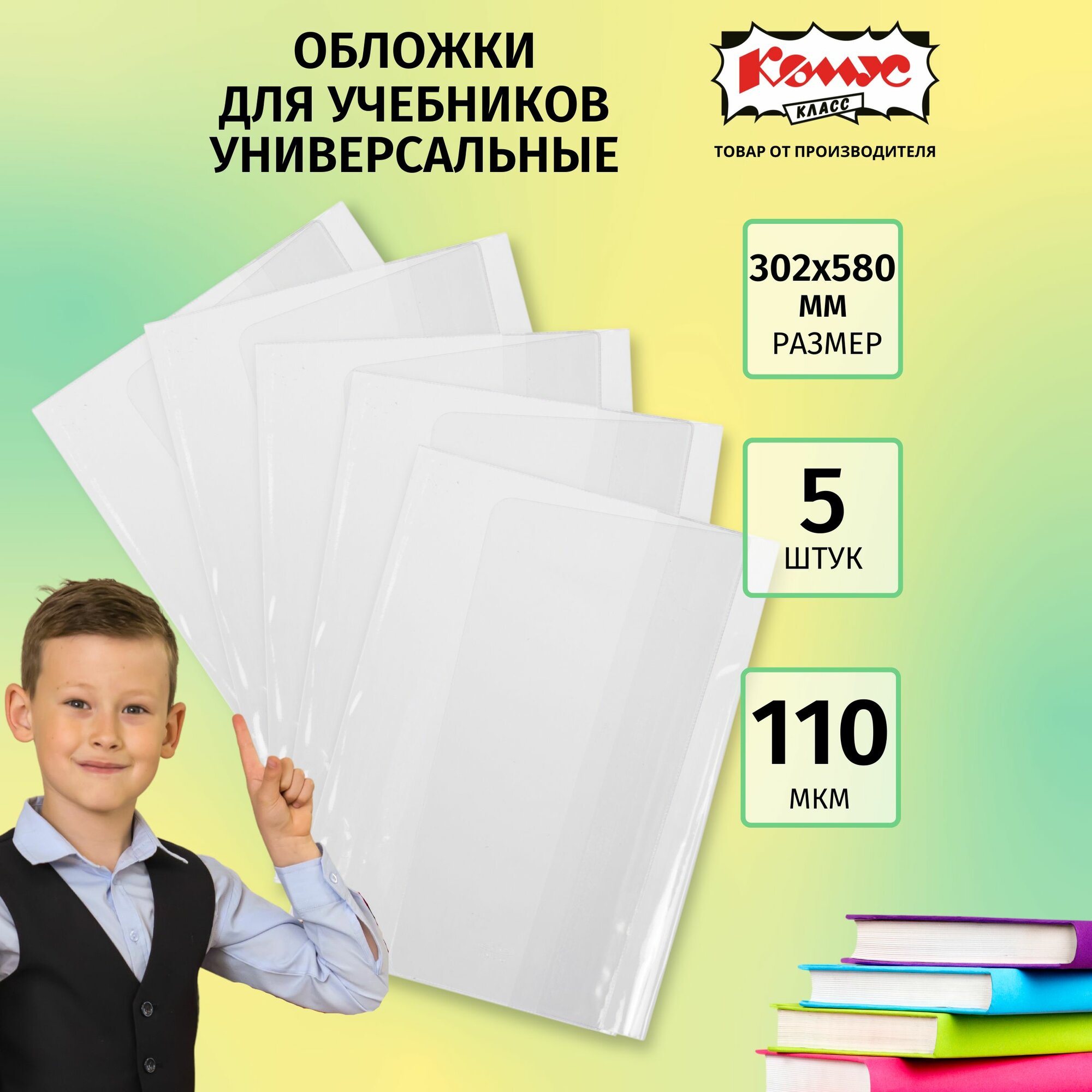 Обложка для учебников и тетрадей Комус Класс (№1 School) универсальные 5 штук в упаковке, 302х580 мм, 110 мкм