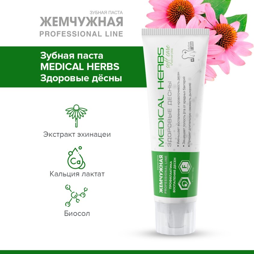 Зубная паста Жемчужная Professional Medical Herbs Здоровые десны от кариеса и налета 100 мл 248 ₽
