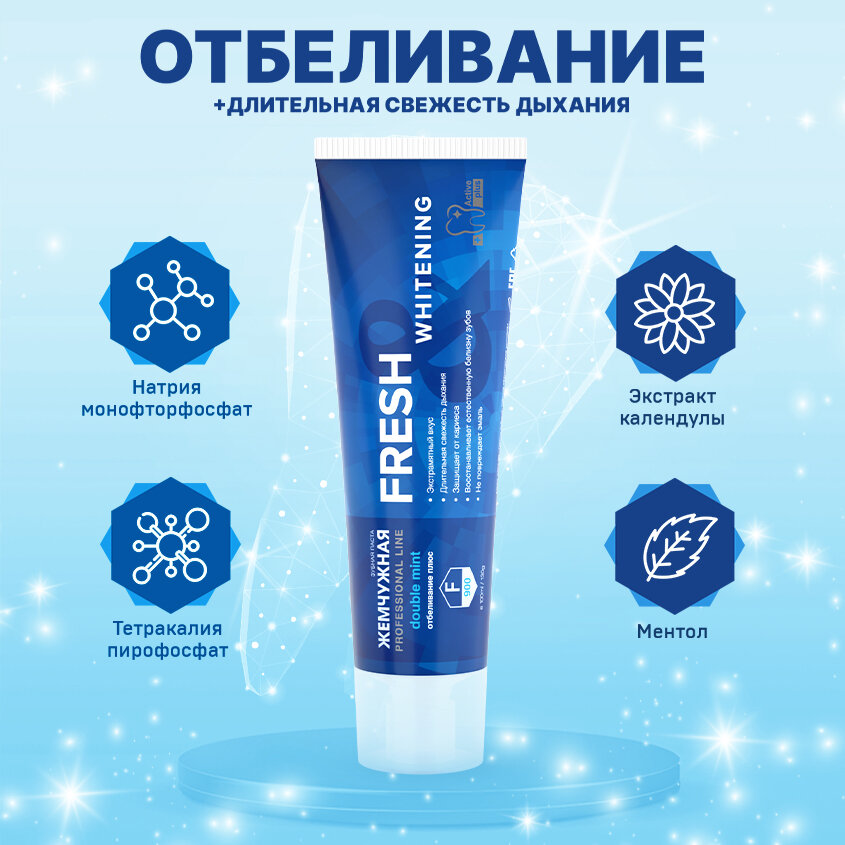 Зубная паста Жемчужная Professional Fresh Whitening отбеливающая, экстрамятная против кариеса 100мл 248 ₽
