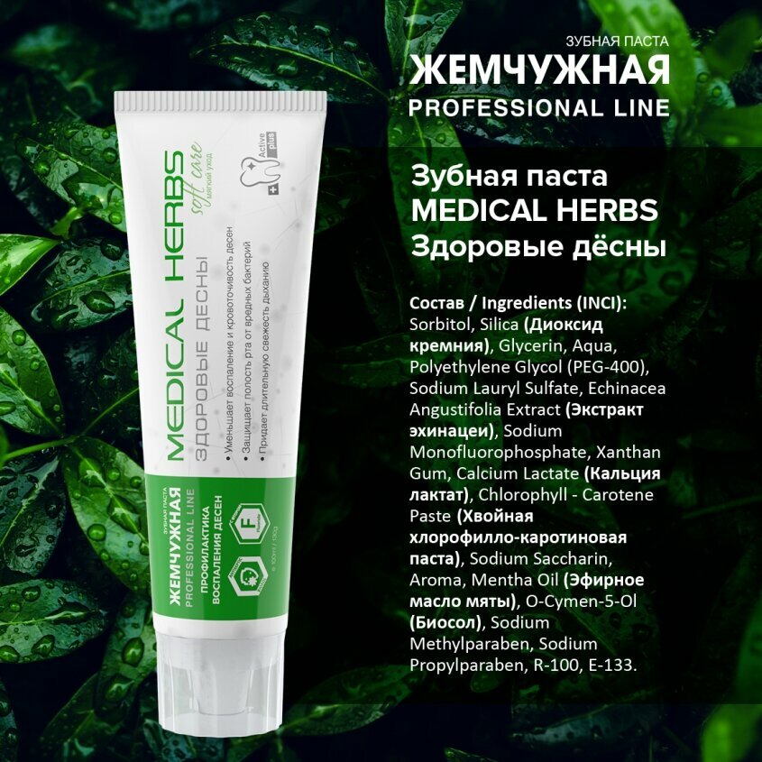 Зубная паста Жемчужная Professional Medical Herbs Здоровые десны от кариеса и налета 100 мл информация: