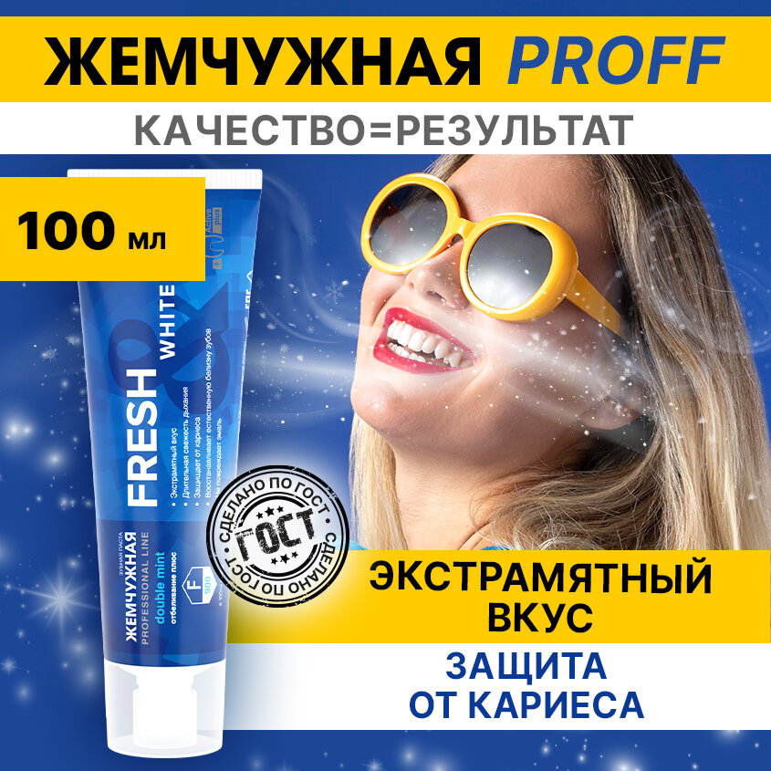 10 цен на Зубная паста Жемчужная Professional Fresh Whitening отбеливающая, экстрамятная против кариеса 100мл