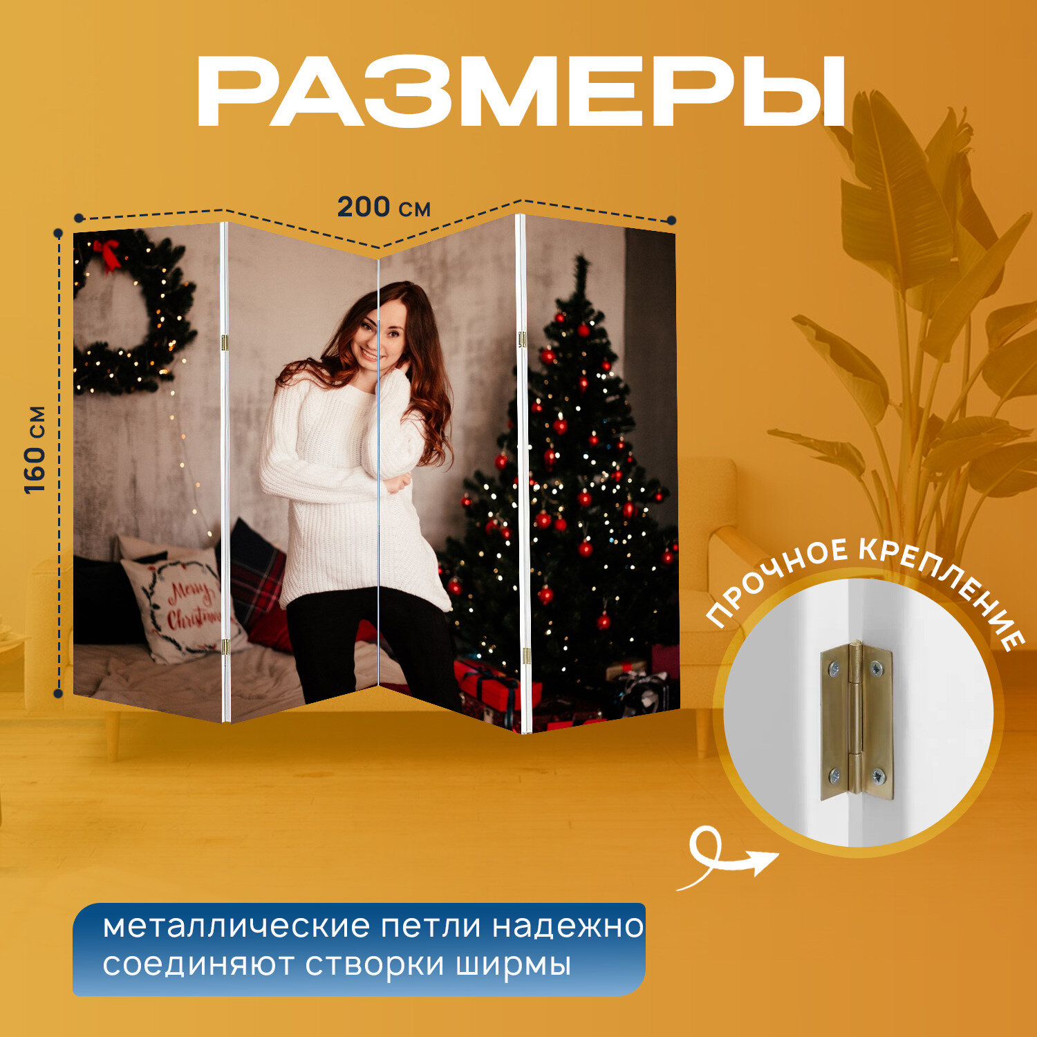 Ширма "Девочка, мода, улыбка" раскладная перегородка для зонирования с принтом на холсте информация: