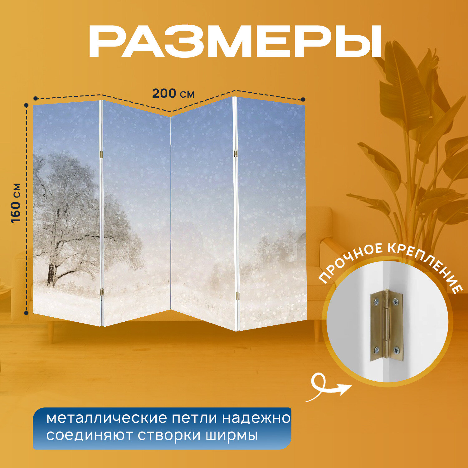 Ширма "Зима, рождество, снег" раскладная перегородка для зонирования с принтом на холсте информация: