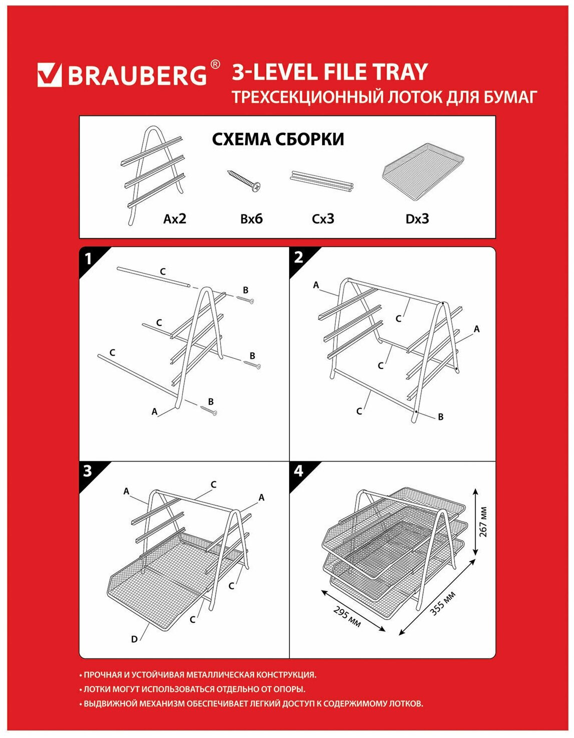 Лоток горизонтальный для бумаг BRAUBERG «Germanium», 3 секции, металл, 267×295×355 мм, черный информация: