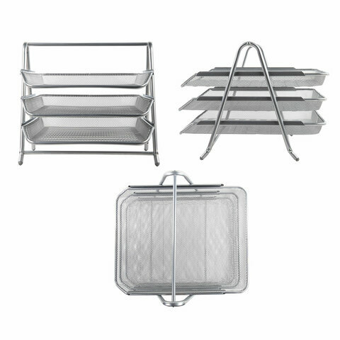 Отзывы на Лоток горизонтальный металлический для бумаг, комплект 2 шт., 3 секции, BRAUBERG "Germanium", А4 (267х355х295 мм), серебристый, 231953