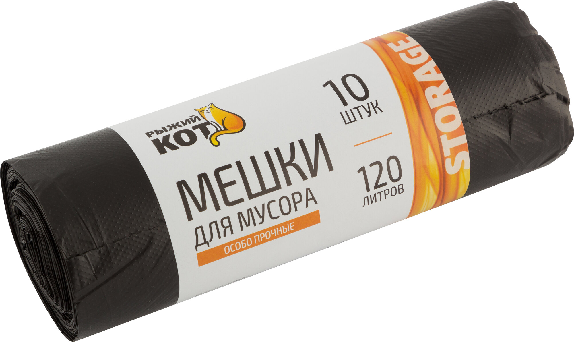 10 цен на Мешки для мусора "рыжий КОТ" 120л (10шт./рул.) особо прочные, ПНД, черные