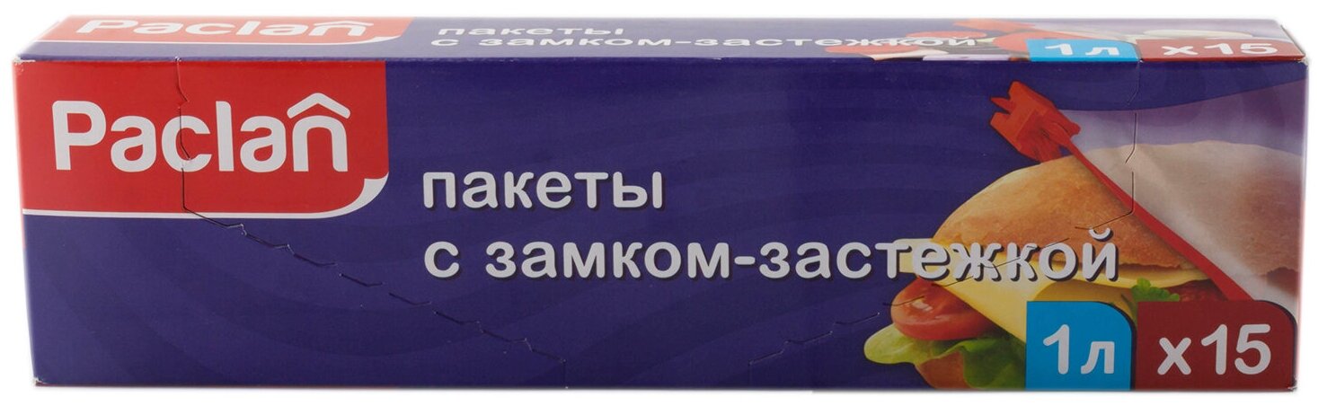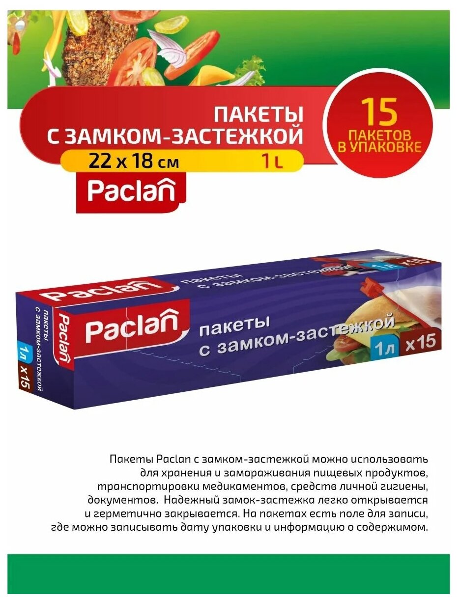 Пакеты фасовочные пищевые для хранения продуктов, с застежкой, 15 шт, 1 л, 22 х 18 см, Paclan информация:
