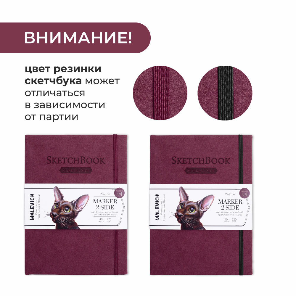 Скетчбук Малевичъ для маркеров, бордовый, двусторонняя бумага 220 г/м, 15х21 см, 40л информация: