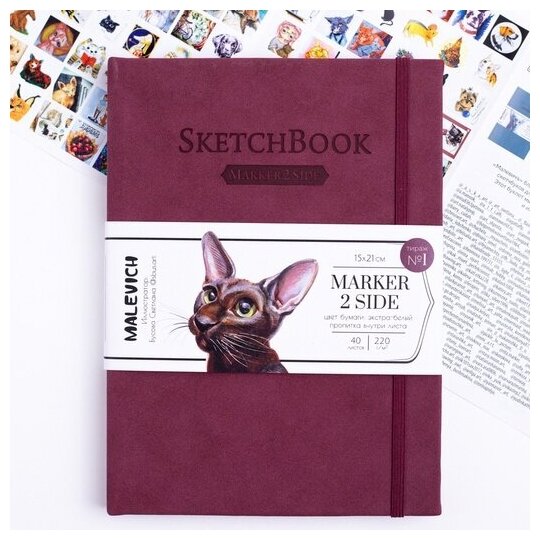 Отзывы на Скетчбук Малевичъ для маркеров, бордовый, двусторонняя бумага 220 г/м, 15х21 см, 40л