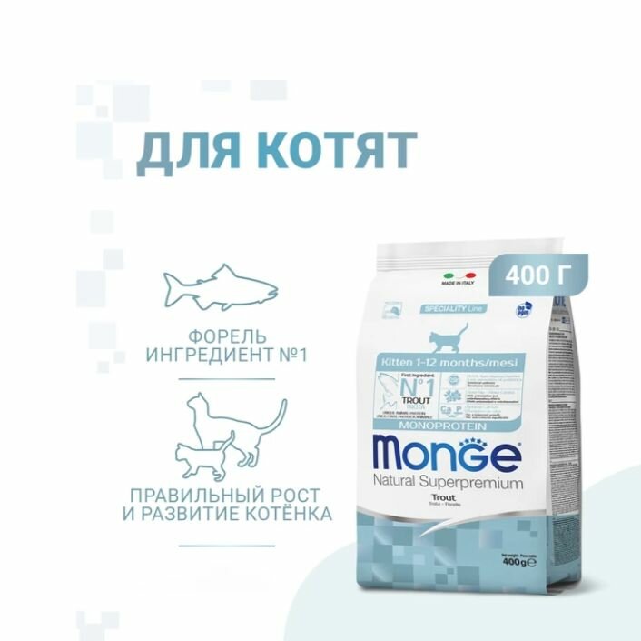 Сухой корм для котят Monge Kitten, форель 0.4кг информация: