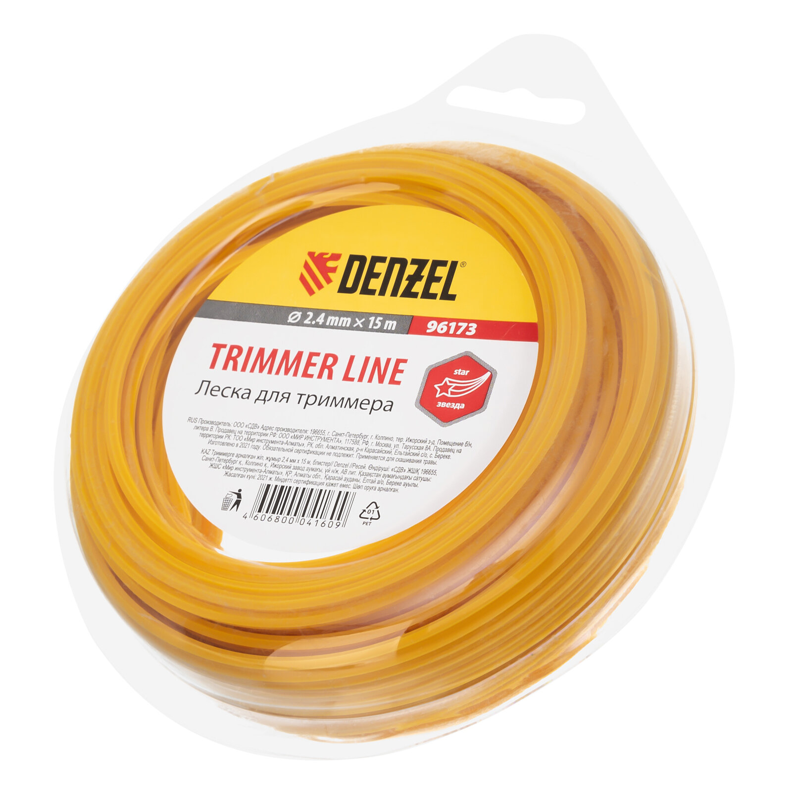 Леска для триммера Denzel 96173, звезда, 2.4 ммх15 м Denzel 4460051